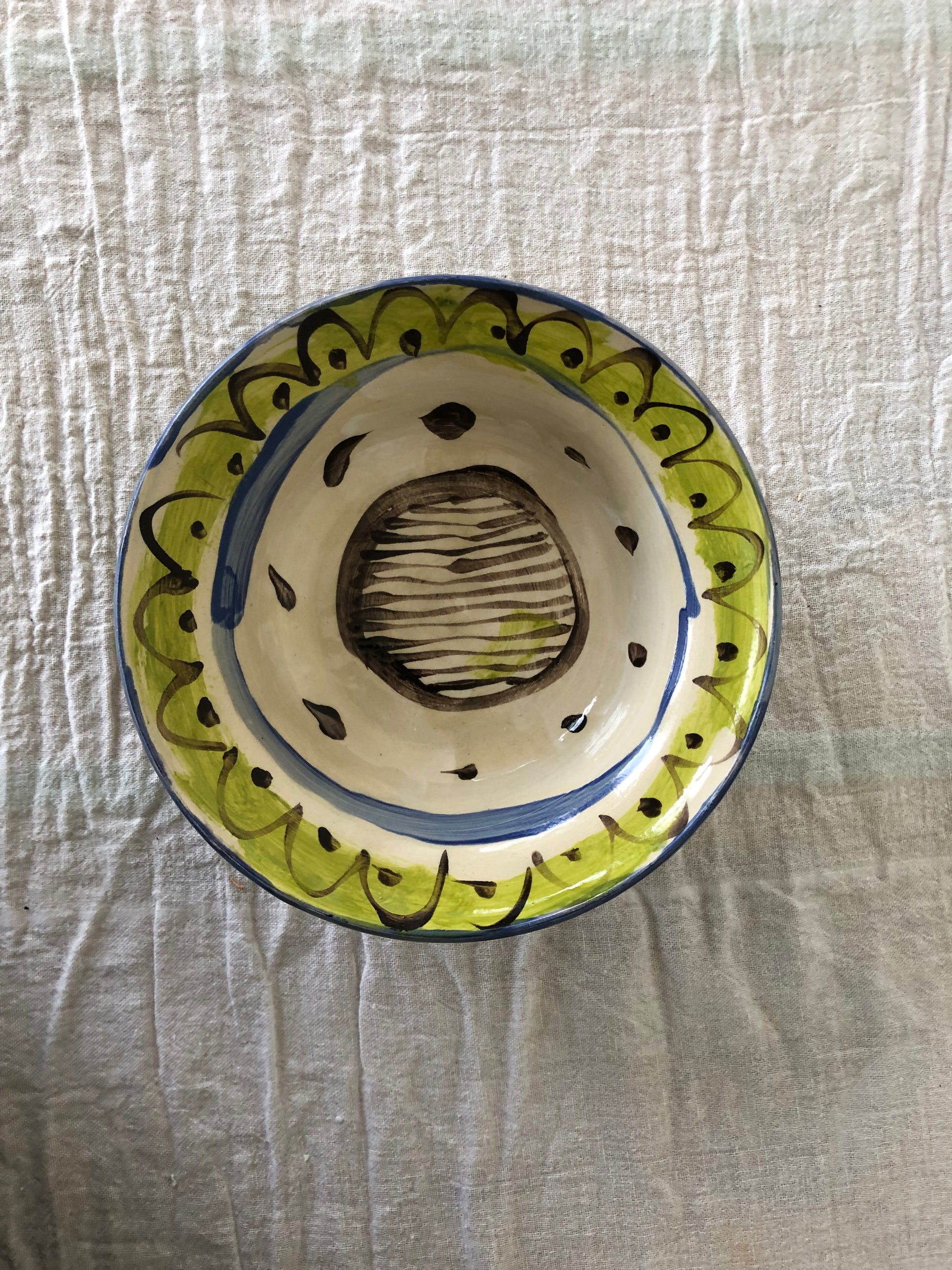 Hand thrown and painted stoneware, each piece is one of a kind.